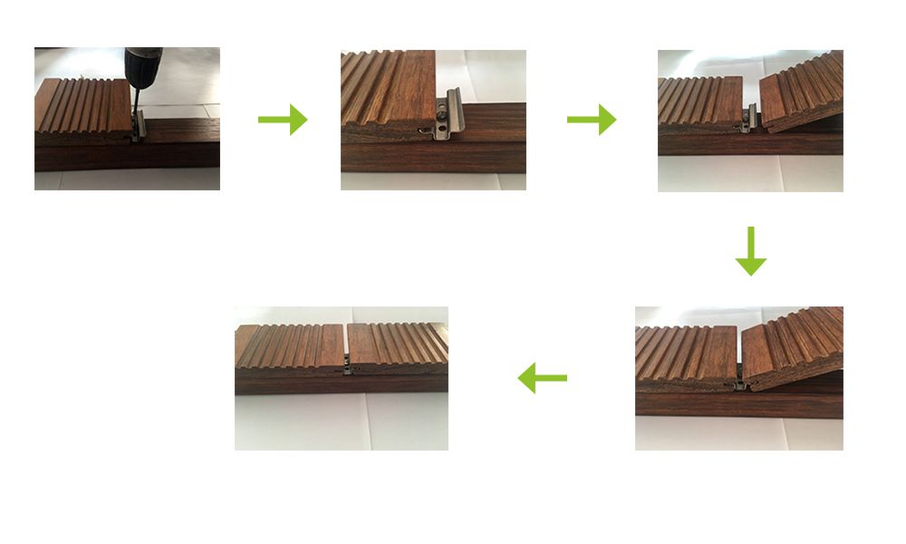 2.デッキの舗装:開始側の最初の床はキールに直接ネジで固定され、隣接した後、溝の両側の床に特別な留め具を挿入して床の間に2つあります。